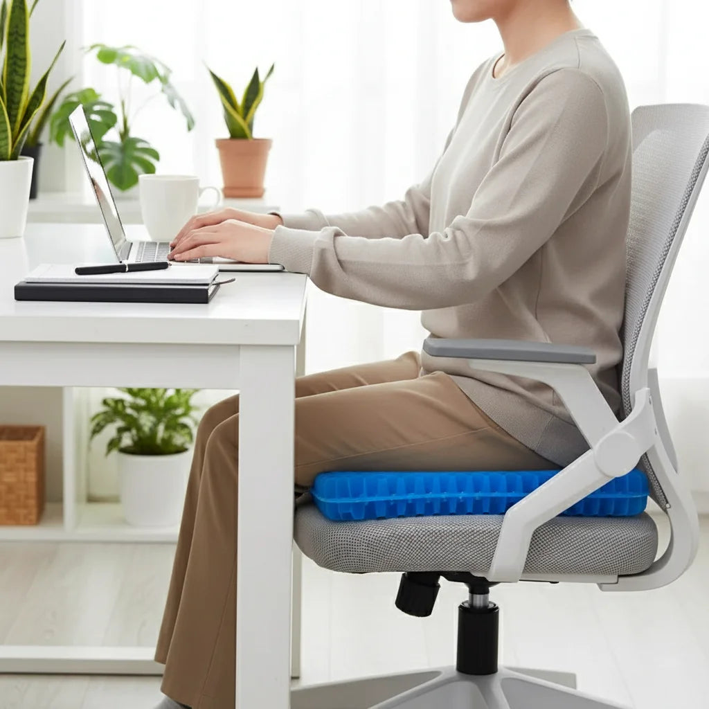 The adaptable gel structure cradles your body, distributing pressure evenly. It helps embrace proper posture, significantly reducing discomfort and fatigue so you can focus on your workday, not your aches.